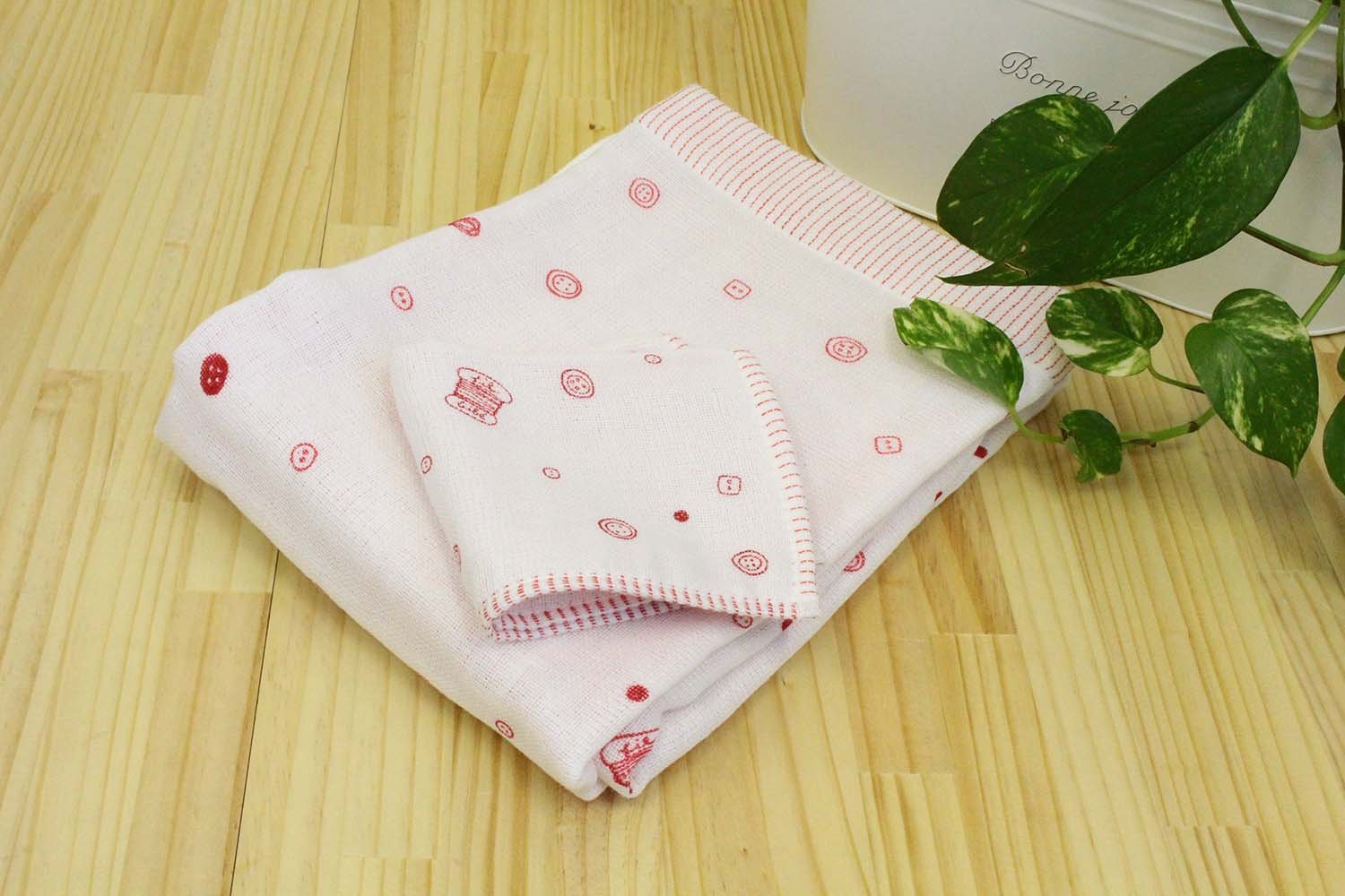 [Imabari] button (R) towel handkerchief about length side 25 x 25cm (Red) (japan import)