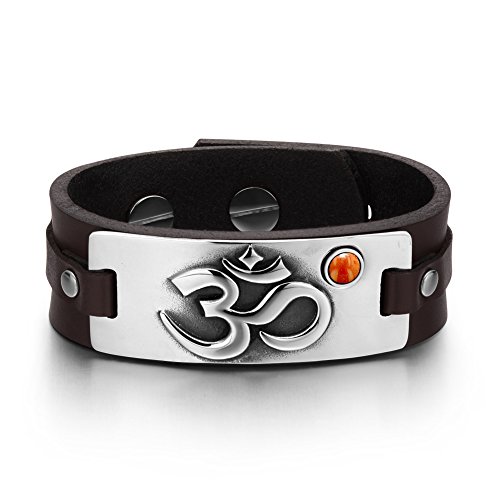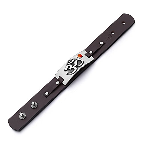 Absolutely Unique and Special Amulet Bracelet. Created as OM Ohm Ancient Tibetan Amulet with Magic and Protection Powers. Adorned with Round Cabochon holding Natural Red Jasper Gemstone. Each of these Unique Bracelets are made from Genuine Leather and may be adjusted to fit smaller or bigger wrists. This Bracelet is made from Dark Brown Genuine Leather and Looks Amazing. Bracelet Tag is Curved to fit with the Wrist Shape and is made from Highly Polished and Beautiful Stainless Steel. Meaning of OM Symbol: As per Hindu tradition, OM is the purest name of God. OM is the most important and significant word of Mantra tradition. Om is the one eternal syllable of which all that exists is but the development. The past, the present, and the future are all included in this one sound, and all that exists beyond the three forms of time is also implied in it. The sound of Om is also called Pranava, meaning that it sustains life and runs through Prana or breath. Om also represents the four states of the Supreme Being. The sacred symbol is often found at the head of letters, at the beginning of examination papers and so on. Many Hindus, as an expression of spiritual perfection, wear the sign of Om as a pendant or piece of Accessory. It is interesting to note that a newly born child is ushered into the world with this holy sign. After birth, the child is ritually cleansed and the sacred syllable Om is written on its tongue with honey. Good Luck and Believe Powers of Red Jasper Gemstone: Red Jasper is Very Protective. It can align all the chakras and balance Yin Yang energies, it is stabilizing and healing. It helps bring problems to light before they are a threat. Red Jasper Gently activates the senses and Protects from witchcraft. This Stone helps in unfair situations And It is said to assist in protection and rescue from danger. Also, Red Jasper is a great all-around Good Luck stone and said to help bring Joy, Luck, and Success into life.