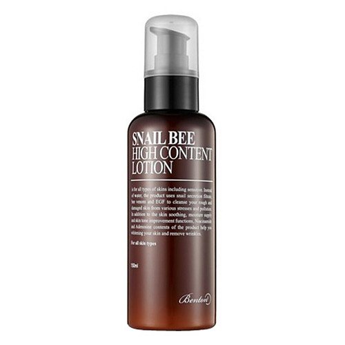 For All Skin Types Beneficial Effect: Helps in Skin Whitening and Wrinkle Improvement Purpose: Skin ProtectantSnail Bee High Content Lotion is for all types of skin including sensitive and troubled skin types. Instead of water, snail secretion filtrate was used. This high content lotion uses bee venom, EGF, Hyaluronic acid various botanical based natural ingredients to help improve your rough and damaged skin from various stress and pollution. In addition to the skin-soothing, cooling effect, moisturizing and skin-lifting improvement, this all-in-one functional multi-care cosmetic has functional ingredients such as Niacinamide and Adenosine which helps brightening your skin and remove wrinkles.Feature