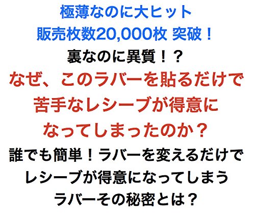 Bombard극박은,본래부터 펜《즈부》 오름의 뒷면으로 붙이는 서브 전용의 러버로서 개발되었습니다.서브 전용의 뒤 소프트이기 때문에 스피드는 전혀 필요 없는 무게를 조금이라도 가볍게 하기 위해서(때문에),스펀지의 두께는 최대한 얇게 해 버릴 것이다.그와 같은 컨셉의(기초)원인설계 한 것이,이 극박 러버입니다.스펀지가 얇고, 문지르면 전혀 전에 날지 않기 때문에 단념해 라켓을 흔들어 회전을 걸쳐도 받침대 중에(속에) 수습되어 버린다.날지 않기 때문에,안심하고 단념해 문질러 자신의 회전으로 가능해 버리는 것입니다.지금까지 체험한 적이 없다,강렬한 회전 덤 첨부로.리시브 기술로 고민해 있는 분은,꼭 한 번 사용해 봐 주십시오!