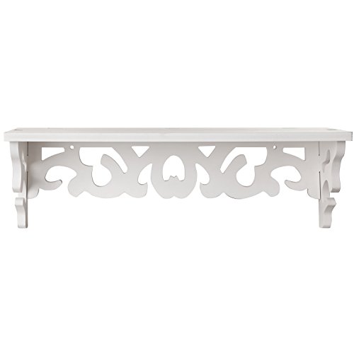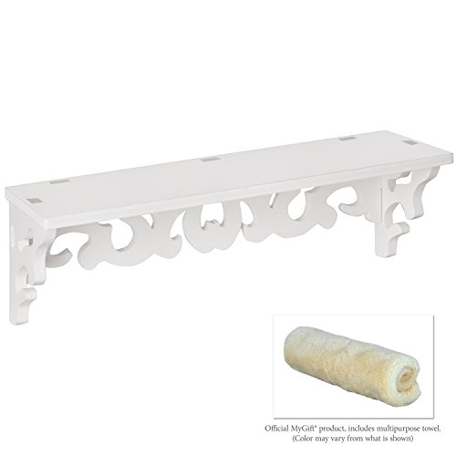- Feature : Wall-mounted storage and display shelf with a white finish and an elegant design of curls. / Single flat shelf surface is perfect for organizing your home, cutting clutter, and showing off favorite knickknacks and keepsakes. / Easy to attach to any wall using appropriate mounting hardware (not included). / **Official MyGift® product includes multipurpose cleaning towel.** / Approximate Dimensions: 15.75" W X 5" H X 4.75" D.