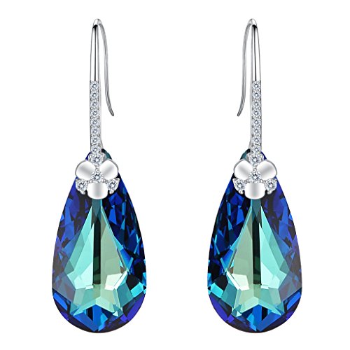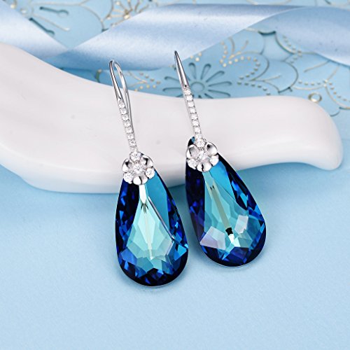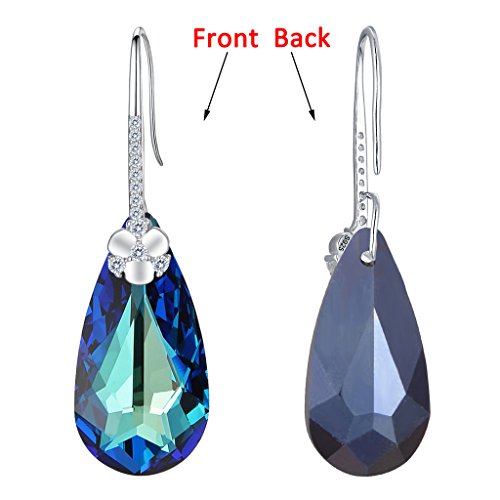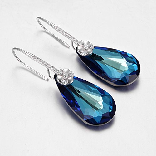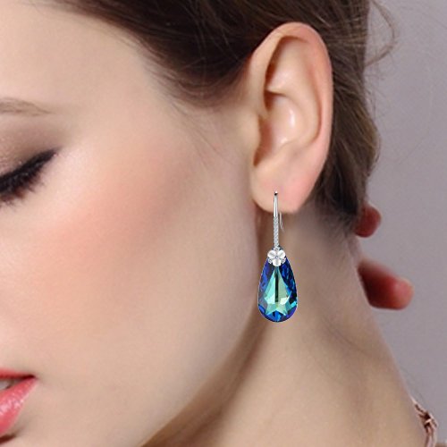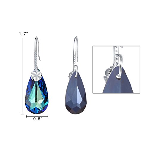 CZ Color: Clear, Swarovski® Crystals Color: Bermuda Blue; Earring's Size: 1.7in L x 0.5in W; Each Earring Weight: 2.85g