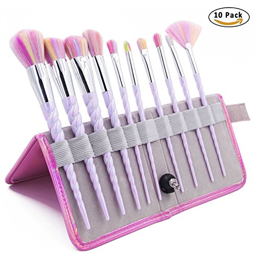 Green Beauty Mall 10pcs Unicorn Makeup Brush Set Professional Foundation Powder Cream Blush Brush Kits with pink bag