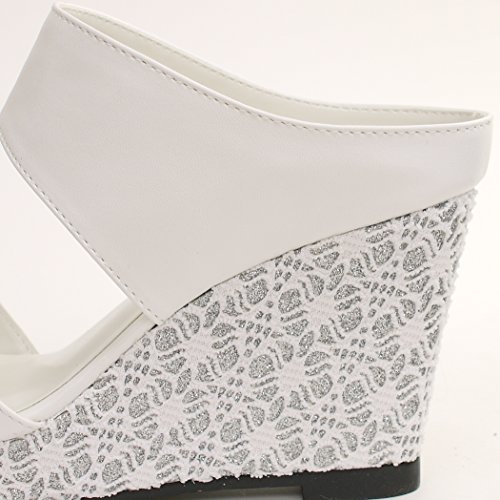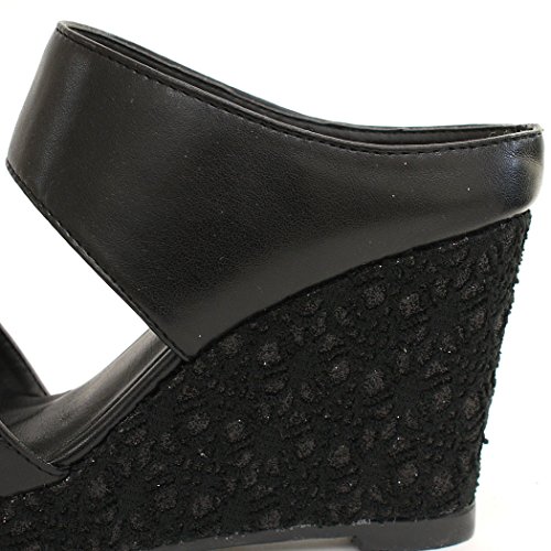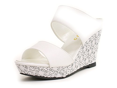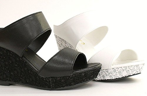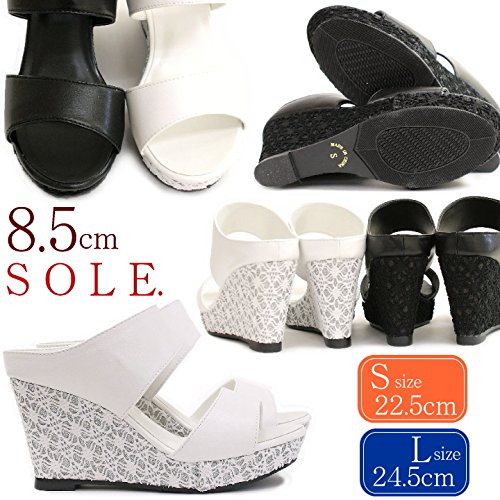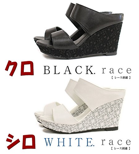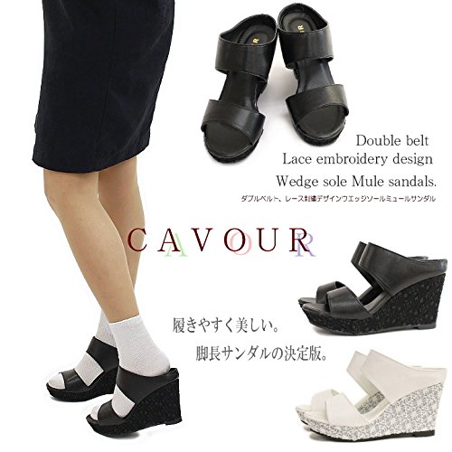 -. Title : ミュールサンダル 厚底 ウェッジソール レース刺繍 ダブルベルト