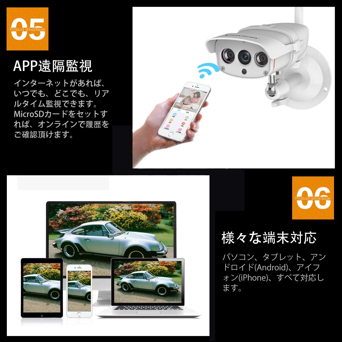 Wide application: Corresponding to ios / andriod / windows, you can use aquarium monitoring, child care, nursing care, pet monitoring and crime prevention at any time.