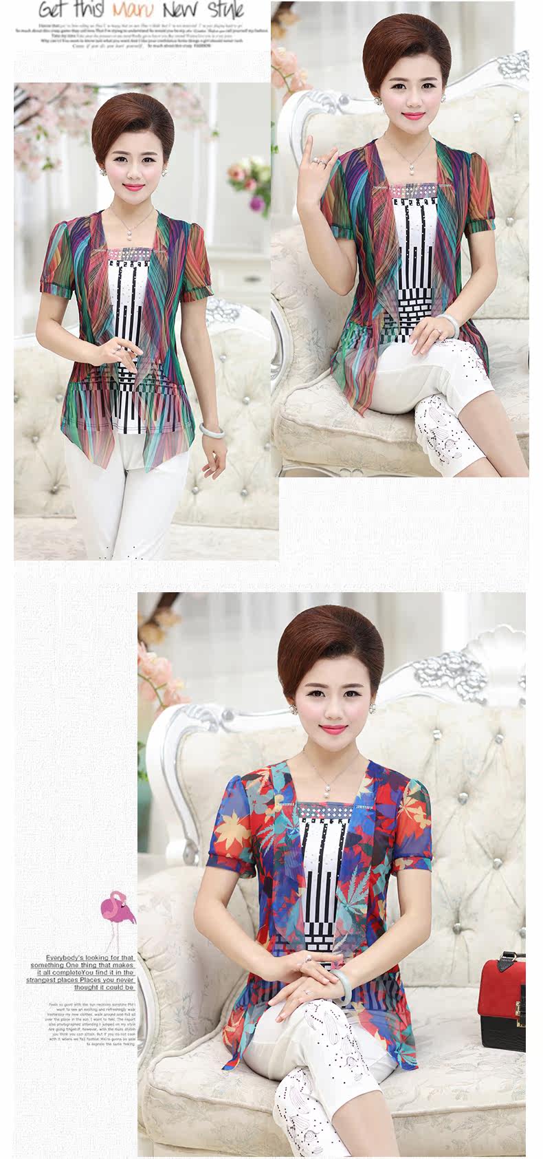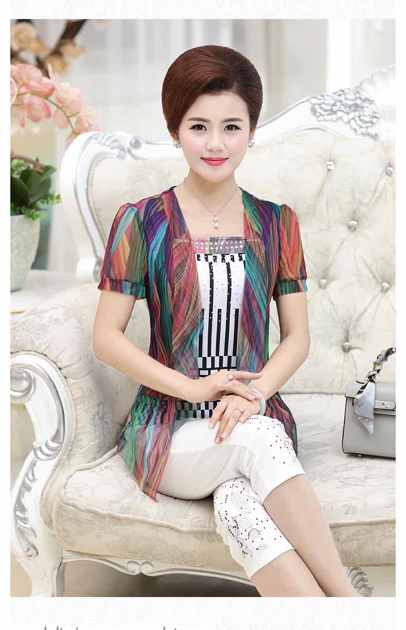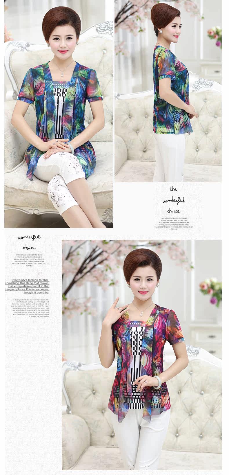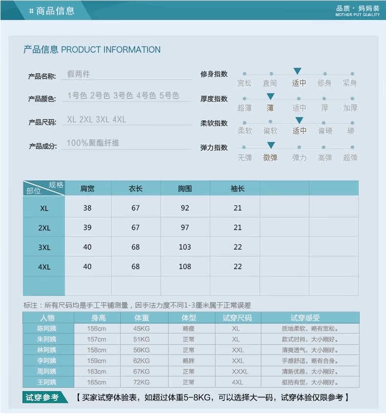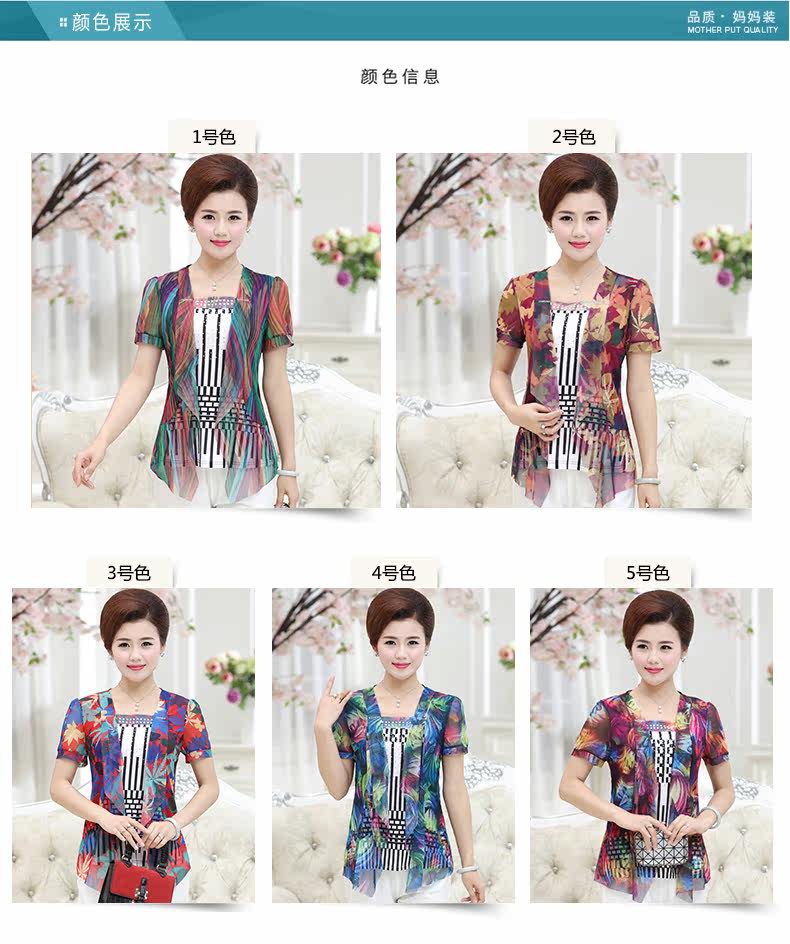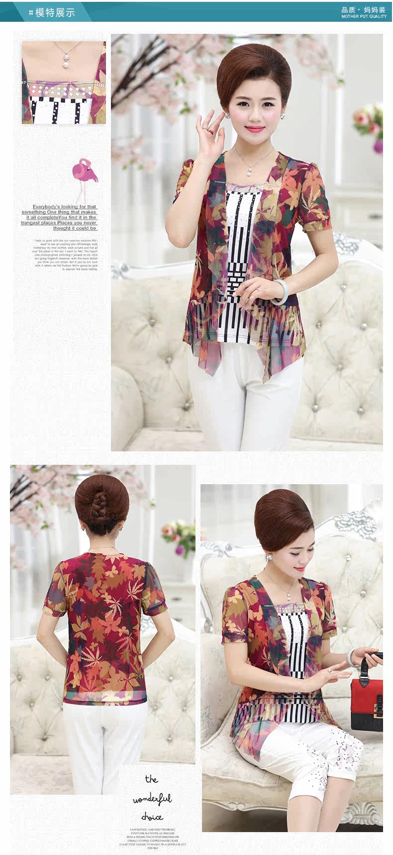 中老年女装短袖T恤夏装中年人女装40-50岁妈妈装夏季上衣假两件