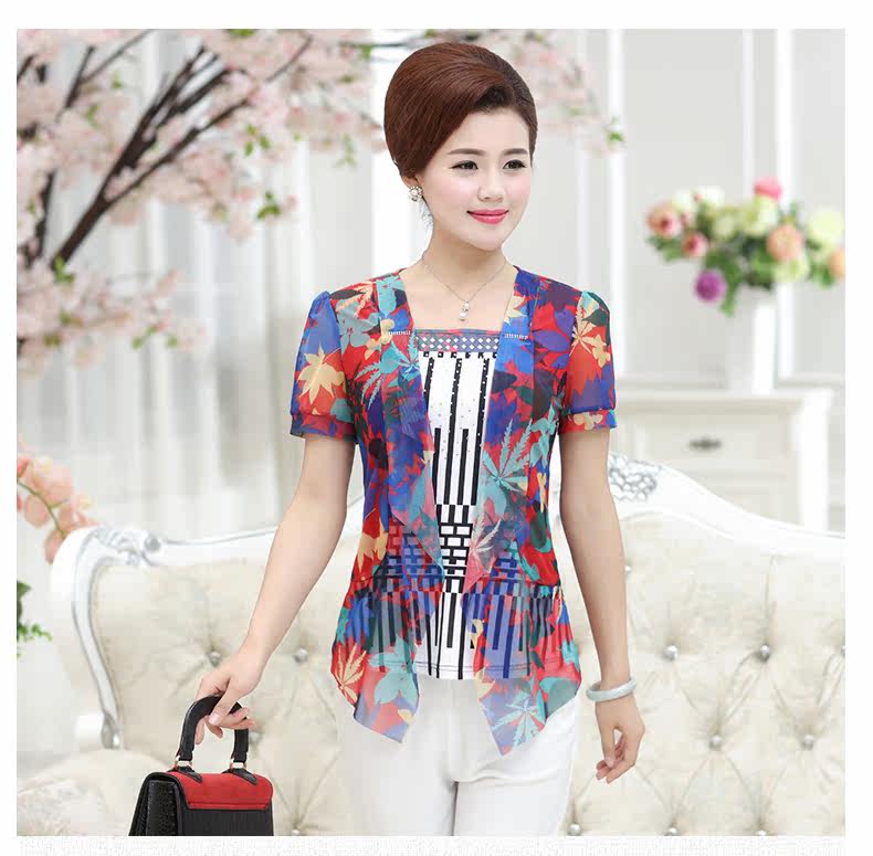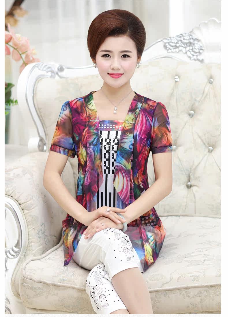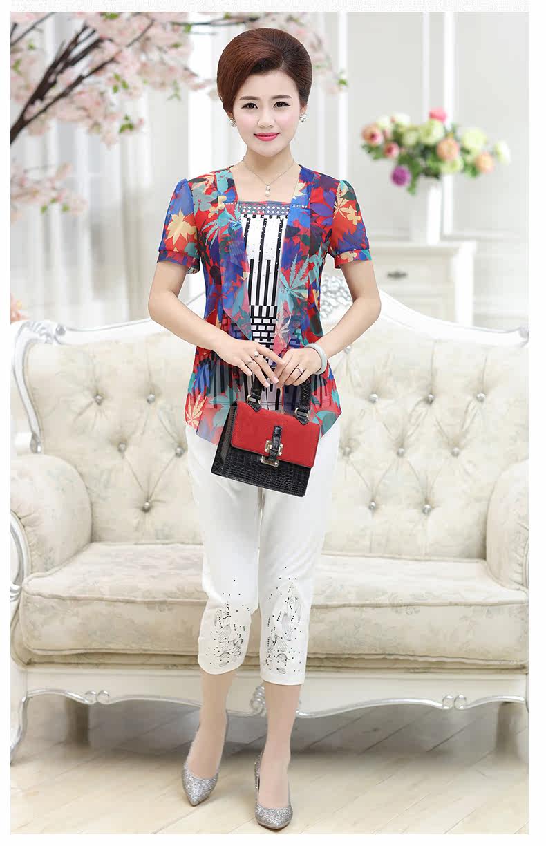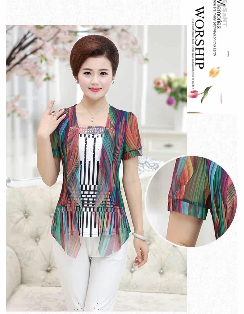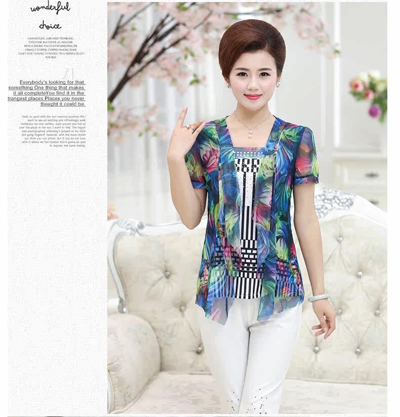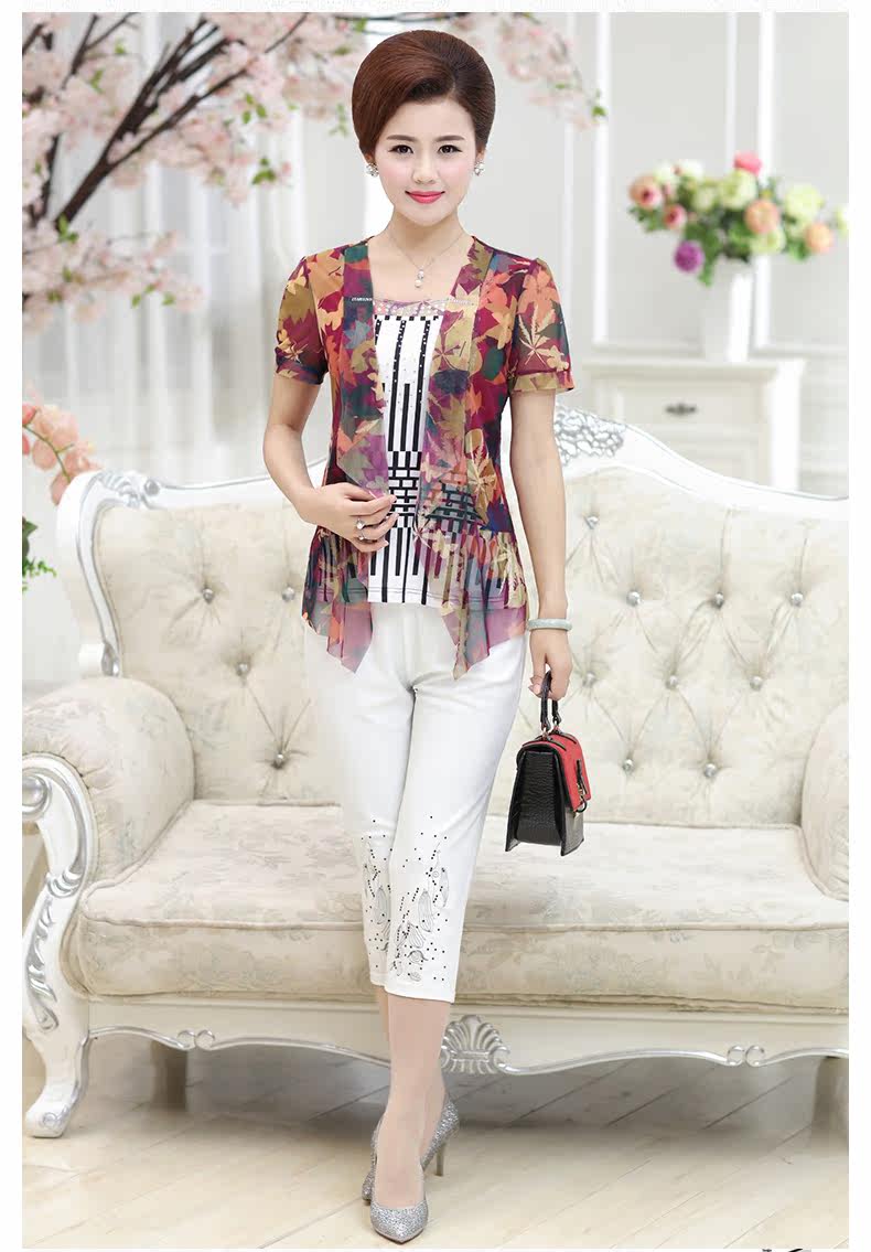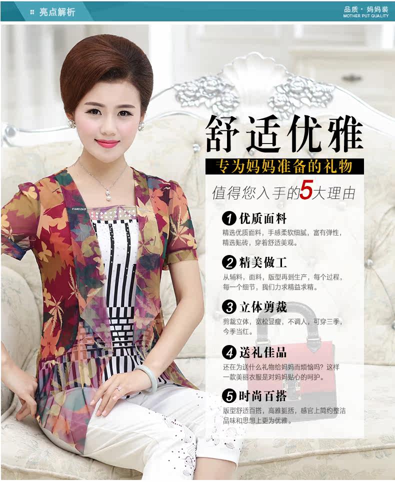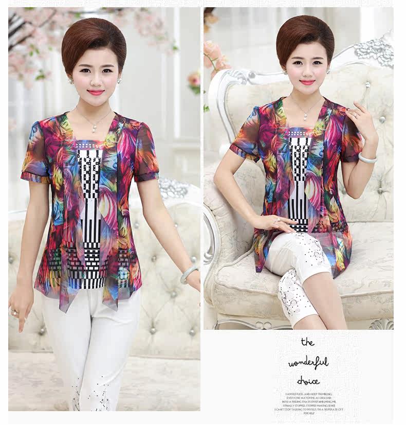 中老年女装短袖T恤夏装中年人女装40-50岁妈妈装夏季上衣假两件