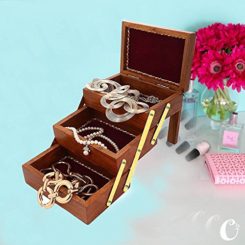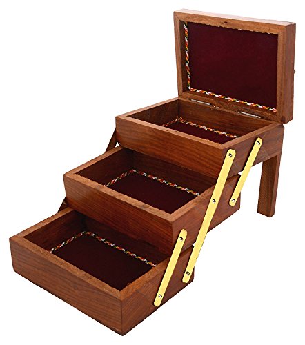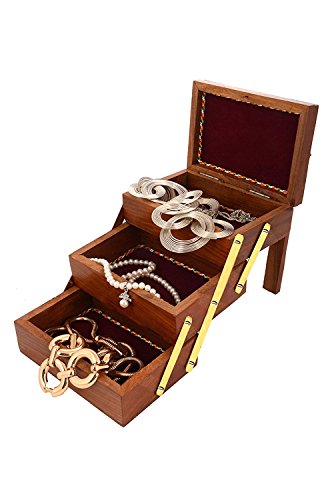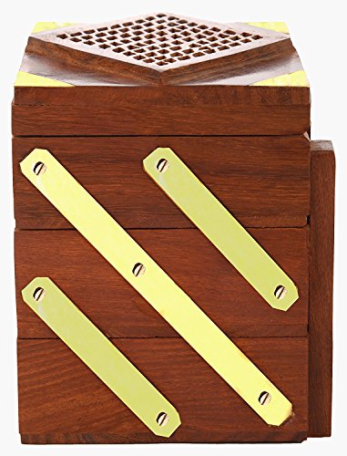 Valentine Day Special Present, Wooden Jewelry Box 3 Folding Jali Design Work, Storage Box, Trinket Box, Vintage Box,Storage Box, Keepsake Box, Jewelry Storage, Organizers Box, Brown 5 X 4.5 Inch.