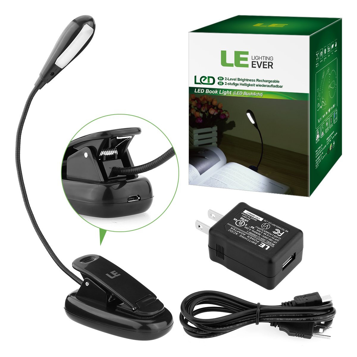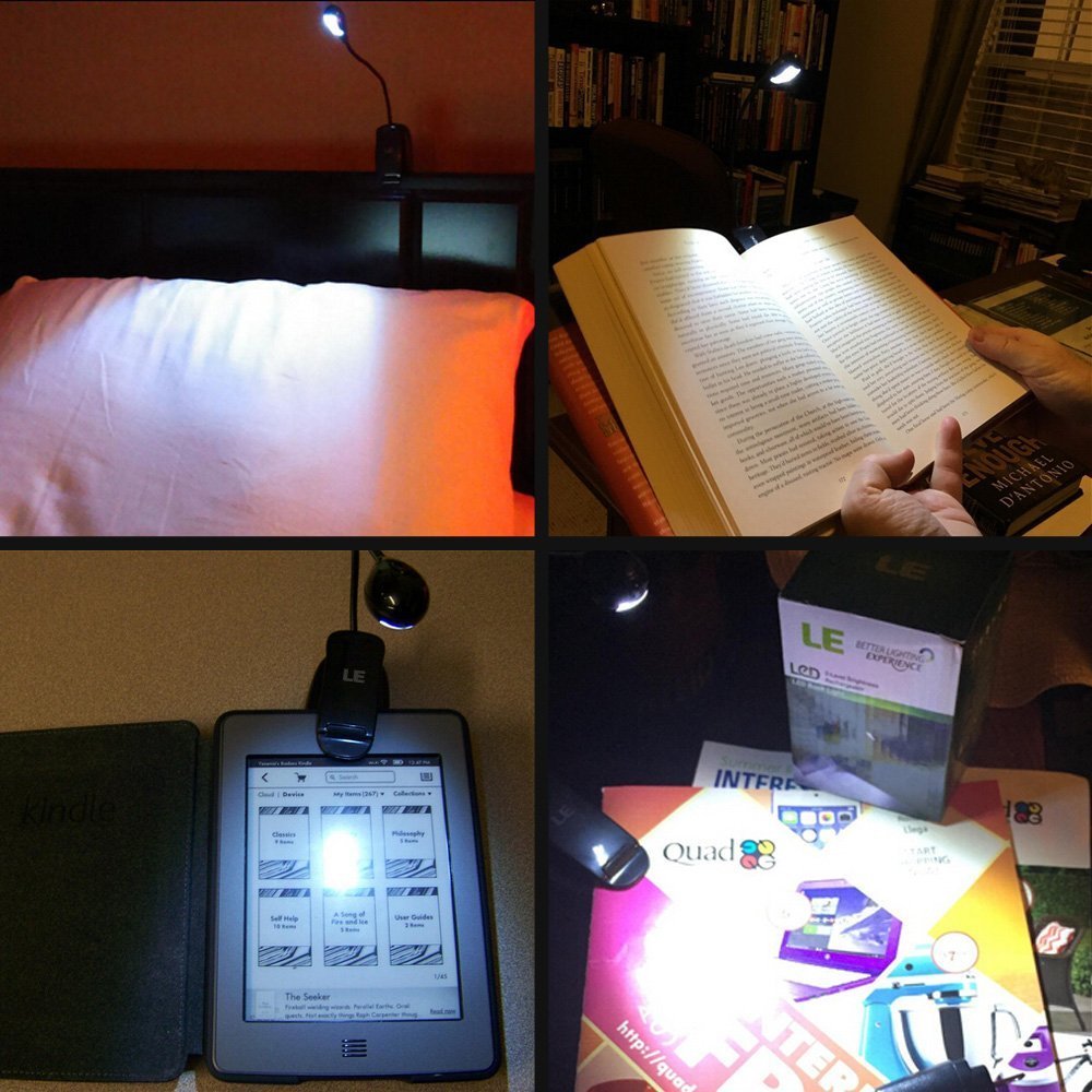When reading, camping or using a computer in the darkness, the super bright 4SMD LED illuminates the bright light.