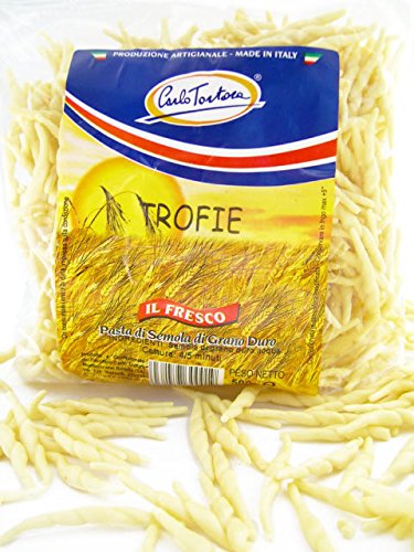 -. Binding : Misc. -. Brand : Alma Gourmet -. Feature : P.R.Ice per 500 gram. / Trofie Pasta is Ligurian pasta made with flour and water, no eggs. / It is rolled into little squiggly shapes and served with basil pesto. / Fresh pasta is pasteurized and sterilized for a refrigerated shelf life of 3-6 months. / Product of Italy. -. Label : Alma Gourmet -. Manufacturer : Alma Gourmet -. PackageQuantity : 3 -. ProductGroup : Grocery -. ProductTypeName : GROCERY -. Publisher : Alma Gourmet -. Studio : Alma Gourmet -. Title : Trofie Fresh Italian Pasta (Pack of 3)