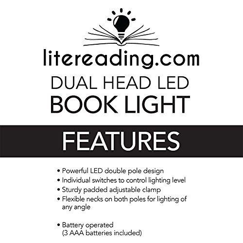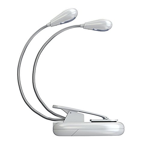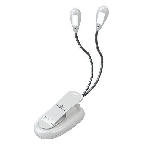 LiteReading Dual Head LED Book Light with Sturdy Grip Padded Clamp, 2 Flex Necks, Clip on Desk, White