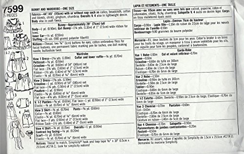 -. Title : Simplicity 7599 Crafts Sewing Pattern Bunny & Wardrobe