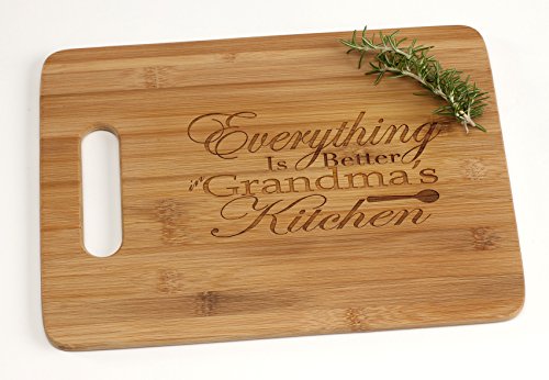 Everything is Better In Grandma's Kitchen Engraved Bamboo Wood Cutting Board with Handle for Mother's Day