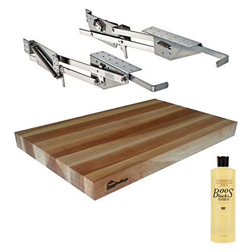 This maple block lift mechanism is for use ONLY in a 18" width base cabinet. Price INCLUDES (1) Rev-A-Shelf - (RAS-ML-HDCR) - Heavy Duty Mixer Lift System (1) 1-1/2" x 12" x 19" Maple Shelf Platform (RAS-ML-HDCR-SB-MBB-MYSB-OF-112-12-19) for the mixer appliance to rest on (1) 16 Ounce bottle of John Boos Mystery Oil with every order. Mixer shown in picture not included. The (3) products are SHIPPED SEPARATELY and may arrive at different times by different carriers. The Rev-A-Shelf RAS-ML-HDCR must be installed in a full-height cabinet with NO drawer above to function properly. It will not work in a cabinet with a drawer. The Heavy Duty Chrome Mixer Lift and Kitchen Appliance Lift Mechanism is the perfect way to take out and put away a heavy mixer without the backbreaking work of lifting it up and down, or taking up counter space. It allows users to easily bring a large mixer, or other large kitchen appliance up to 60 lbs., to counter height for ease of use. Nature's subtle beauty will influence the unique appearance of all finished wood products. The natural character of the sapwood, heartwood, graining and how each layer is handcrafted will give each block its own unique look. Our fine cutting blocks show off a beautiful maple edge grain layup, where each individual plank is turned on edge so the tight grain and figure are visible along the long edge for the best appearance, durability and strength. Finished with a NSF certified food-safe mixture of natural white mineral oil beeswax applied in our shop. Featuring a reversible wood cutting board that provides two flat surfaces. Each block is also TRIMMABLE for both width and depth. A Butcher Block Cutting Board Care Guide is also included with shipment. Each is handcrafted in the USA by skilled Amish woodcrafters, rightfully recognized for quality, value and workmanship by maintaining traditions that support personal attention to detail and use of high quality materials. 0 |