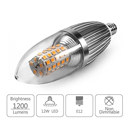 HzSane E12 LED Candle Bulbs 12W, 100W Incandescent Bulbs Equivalent, 3300K Warm White Candelabra E12 SES Bulbs, Non-Dimmable, 1200Lm, LED Light Bulb, Small Edison Screw Candle Light Bulbs, 2-Pack