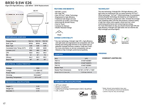 This 8 pack of 65 watt equivalent LED light bulbs is powered by ViriTrue White technology.