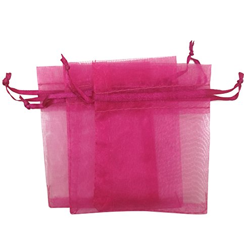 SUNGULF 100pcs 3x4 Organza Wedding Favor Gift Bags Jewelry Pouch,Hot Pink