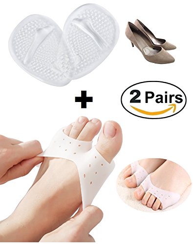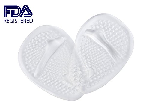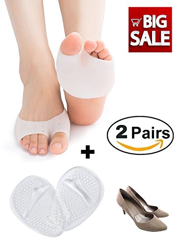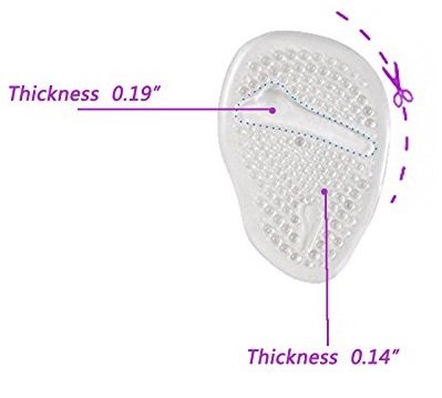 These cushion insoles absorb shock and redistributes pressure to the sensitive ball-of-foot area. ? HIGH-QUALITY MATERIAL: Made of durable, soft and safe medical-grade silicone gel, has a strong elasticity and flexibility, long use will not be deformed. If your feet tend to sweat a lot, you could wear NO SHOW socks before wearing your shoes. ? ONE SIZE FITS MOST: Moderate thickness, not too thick so it leaves room for your toes. ? NO ODOR: Our gel cushions will not get dirty or stink like you might from other pads. ? Perfect pad for conditions such as:: - Metatarsalgia/Ball of Foot Pain. - Neuromas. - Diabetic Foot Pain. - Metatarsal Fat Pad Atrophy. - Blisters Calluses. - Burning Sensations at the ball of the foot. - Other Forefoot Pain. ? Package included: 1 Pair of Ball of Foot Metatarsal Cushions 1 Pair of Gel Ball of Foot Pads ? Our customer`s satisfaction keeps us in business:It is our goal to make your transaction the best it can be and remain one of the TOP Sellers on Amazon by earning five stars on all the seller ratings. If there is anything you have a problem with or anything is preventing you from leaving us5 star ratings please let us know and we will do all we can to correct the problem.?100% MONEY BACK GUARANTEE: Rest assured to order. In case you are not satisfied with your purchase, We will replace it or give your money back for any reason. Add to cart for you and your loved ones. ?Delivery fast, arrive at the time you expect. 0