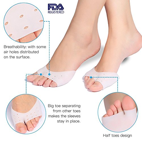 ? EXCELLENT ARTIFICIAL FAT PAD: The super soft gel foot pads help to reduce the pressure on the toes and metatarsal, provide maximum comfort for the sensitive tissue of your foot, and relieve ball of foot pain rapidly and effectively.