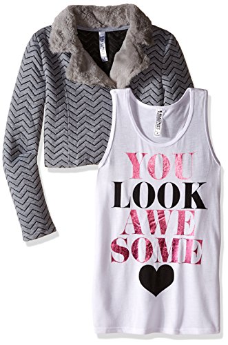 Beautees Big Girls' 2 Pc. Moto Jacket With Sherpa and Heart Screen Tee, heathergrey, Large