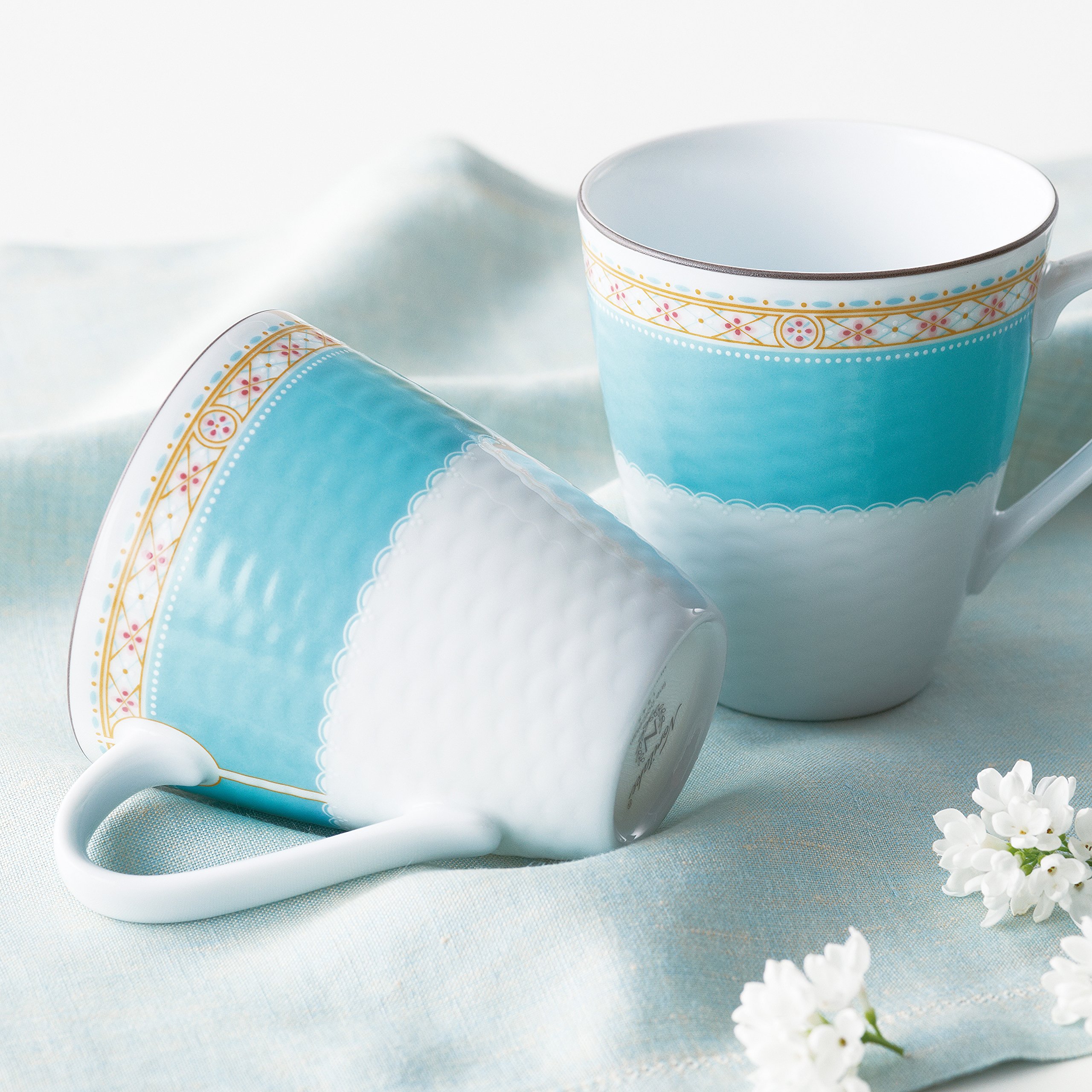 Noritake Fine Po Sen humming Blue Mug pair set P5355L/1645 (japan import)