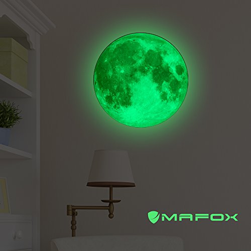 -. Feature : ENCHANTING ROOM DÉCOR FOR KIDS - Transform your children's room into more appealing, celestial& captivating space with our Moon Glow Stickers or Wall Stickers. Let your kids lie down and gaze at an illuminated moon which gets more dramatic with the darkness - not only does it help your children fall asleep but also helps take away their fear of darkness and adds more fun to the sleeping time - trust us they would wait for the bedtime all day long! / IDEAL FOR RELAXING & ROMANTIC AMBIENCES TOO - Not only are these glow in the dark stickersloved by kids but even adults are going all gaga about it. They help create a more relaxing & soothing experience after a tiring day's work, offer you an easy way to create a romantic ambience, and spend some quality leisure time. A luminous moon is certainly far more better & unique when compared to glow in the dark stars. / PERFECT GIFT THAT'S EASY TO APPLY& EASY TO REMOVE - Our self-adhesive glow in the dark wall stickers or glow in the dark ceiling stickers could be easily sticked to any flat, clean and non-textured surface (be it a wall, ceiling, locker, metallic surface or any other similar surface) & are equally easy to remove & reposition without damaging the surface on which they are applied. The luminous stickers also make for an ideal gift for little kids, friends or family members. / REAL-LIKE GLOW &SUPERIOR QUALITY -The MAFOXGlow in the dark wall decals appear normal during the day light but start to become illuminatedas it grows dark & offer a real moon-like simulated effect at night which is nothing but close to magical.Moreover, our stickers come in 30 cm dia (11.82"), and are made up of non-toxic, eco-friendly, waterproof, pressure resistant, shock resistant& durable fluorescent PVC & paper - sure to give amazing performance. / 100% RISK-FREE SATISFACTION GUARANTEE - We also offer you 100% Risk-free satisfaction guarantee to let you buy with confidence; no questions asked. However, we are quite sure that you will be super impressed with the way this glow in the dark sticker creates beautiful, fun-filled & charming ambience without requiring too much of an investment or efforts on your part, and will love yourselves for the decision of buying it.