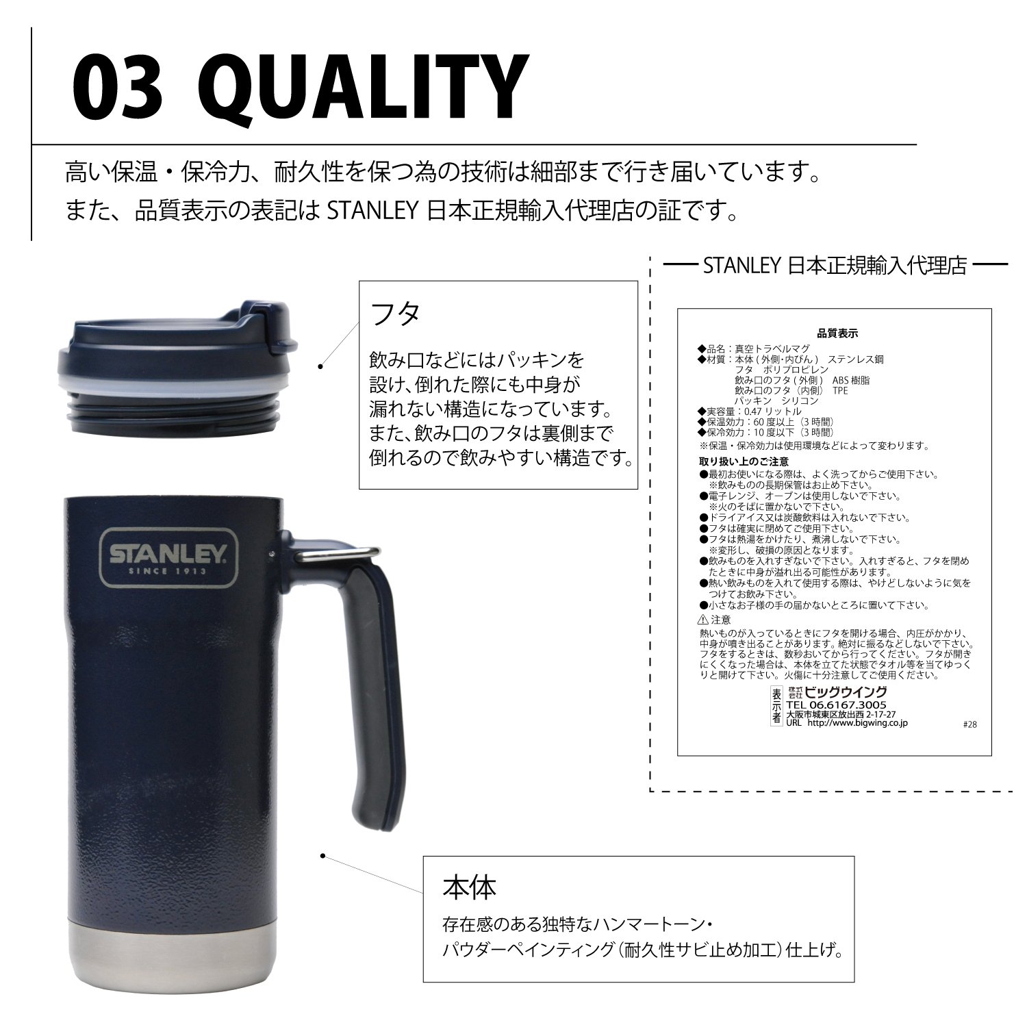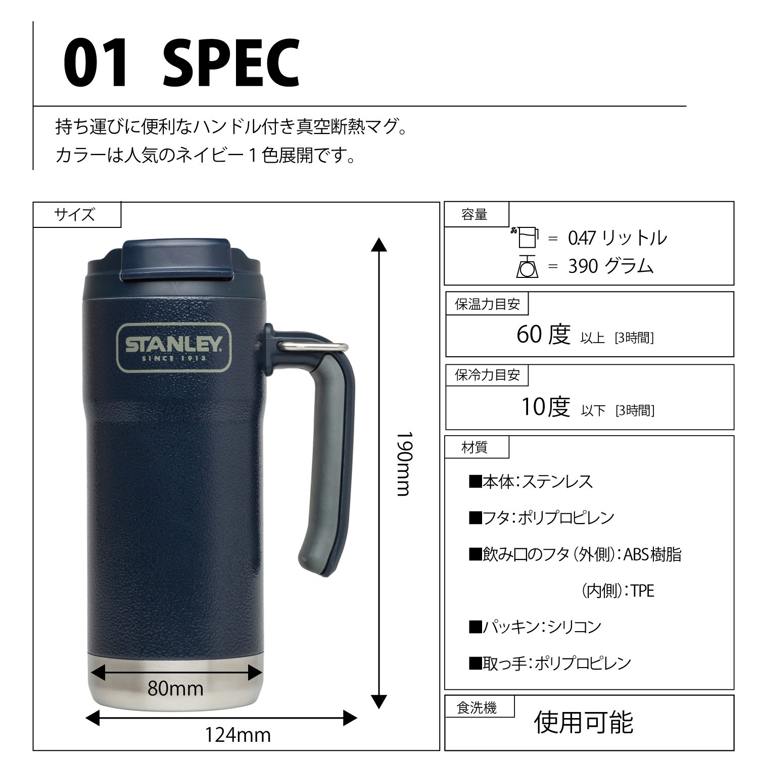 "Stanley vacuum travel mug 0.47 L navy 01903-008 (Japanese genuine)" is high heat insulation with vacuum insulation, it is a magnetic bottle with a handle that is convenient to carry around you can use on a daily basis.