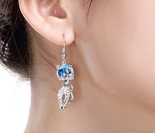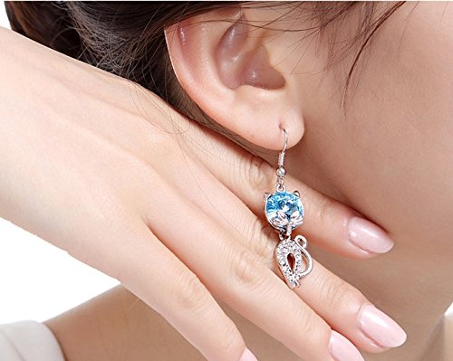 Platium Plated Cute Cat Cubic Zirconia CZ Post Dangle Earrings