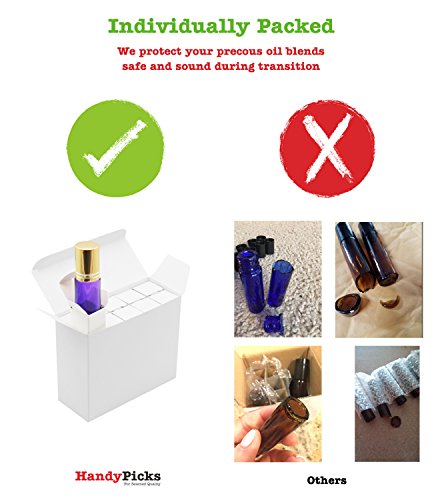 - Extra bonus: to express our appreciation to your order today, we will send you via email a PDF version of our latest Essential Oil Roller Bottles E-BOOK, which includes various practical & effect proven roller bottle recipes (bliss blend, stress away blend, and many more); roller bottle usage guide, etc. Stay opted in to receiving Amazon emails so that we could send you the E-BOOK. Enjoy your DIY aromatherapy projects with Handy Picks roller bottle set!