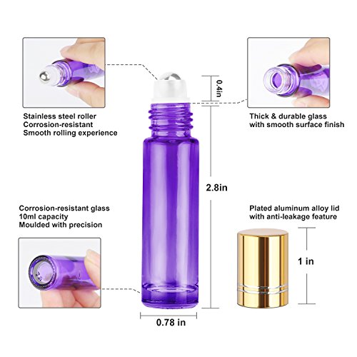 - Quality & Stylishly made: our essential oil roller bottles are made of corrosion-resistant glass, they protect your precious essential oils from harmful UVs or quick volatilization. Stainless steel roller ensures smooth oil application experience. The stylish gradient colors fresh & lighten up your spirit every time you use them.