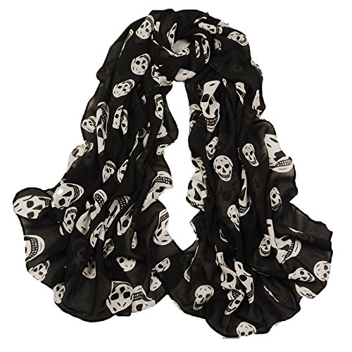Binding : Apparel Product Description This scarf can be worn in any season comfortably but not a source of warmth in the winter. This is definitely a piece of fashion scarves for women. It's just a simple medium long length scarf that can be worn in several different ways .The colors on this are fairly basic and easy to match up . What a perfect christmas scarves for women. Made of silky soft and cozy chiffon material, the womens scarves clearance skull style makes it a cute embellishment to an outfit. 160cm*40cm in size and only 60g in weight. Though the womens scarves lightweight, it can be wrapped or just lay and doesn't fly around. The scarves is in good quality and price, the skull printing is clear and not easy to fade even after a long time use and wash. 0