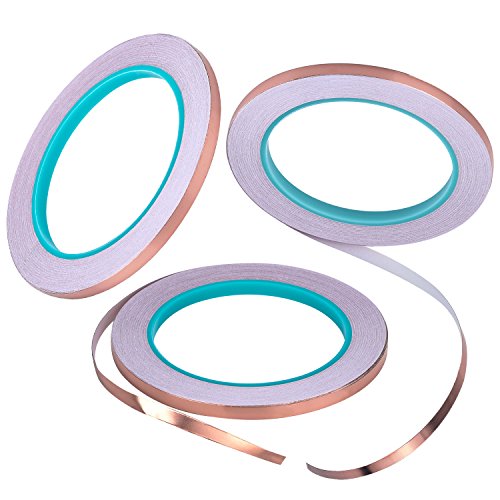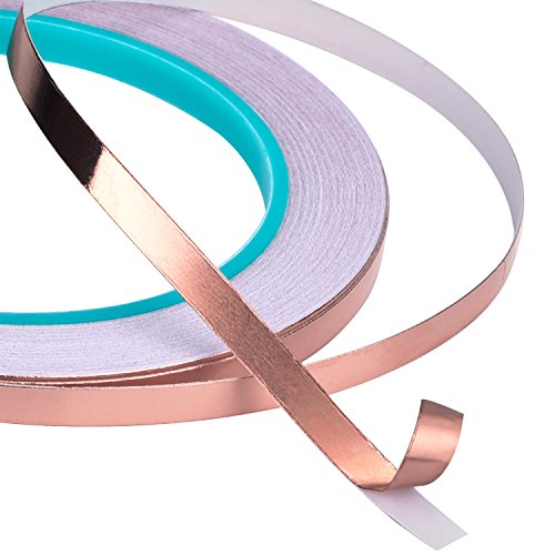 - 2 Pack dual conductivity copper foil tape: they are made of copper; Each copper foil tape is 1/ 4 inch in width, 21.8 yards in length; 2 Pack copper tapes in total