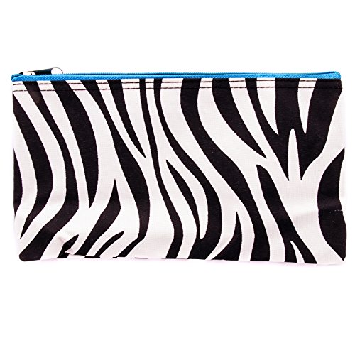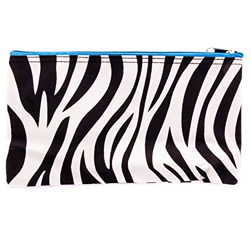 11" Zebra Print Zip Cosmetic Travel Makeup Brush Bag Pouch (Blue Trim)