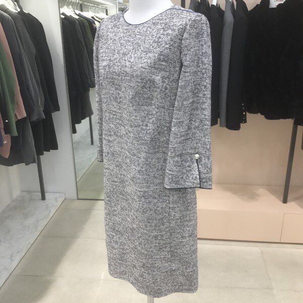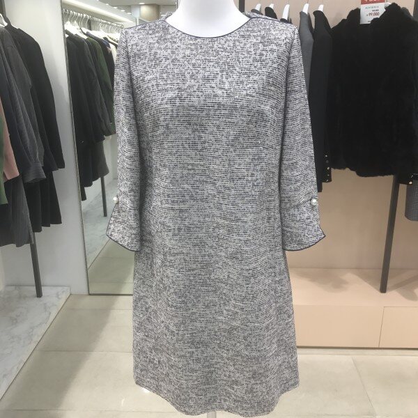 7부소매끝 진주장식으로 포인트를 준 A라인 원피스 입니다