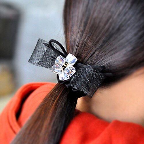 (KAKA)/Health Care/Respiratory Aids Accessories/DIRECT FROM USA/KAKA(TM) Women Girl Fashion Elegance Five Rhinestone Decorate Stretchy Hair Rope Band Black Nets