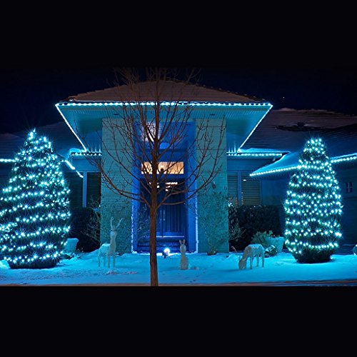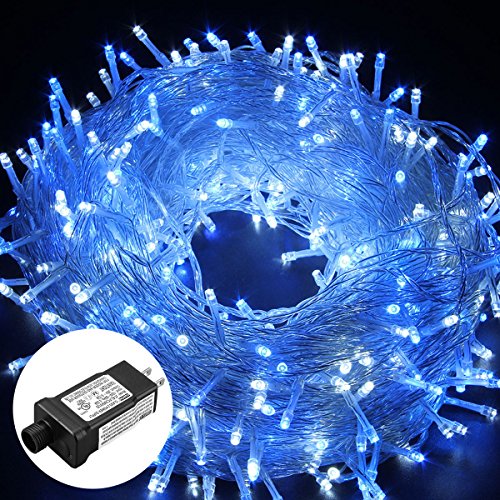 Excelvan Safe Low Voltage 8 Modes 500 LEDs 100m/328ft Dimmable Fairy String Lights with Transparent String for Bedroom Patio Garden Gate Yard Party Wedding Christmas Decoration, White+Blue