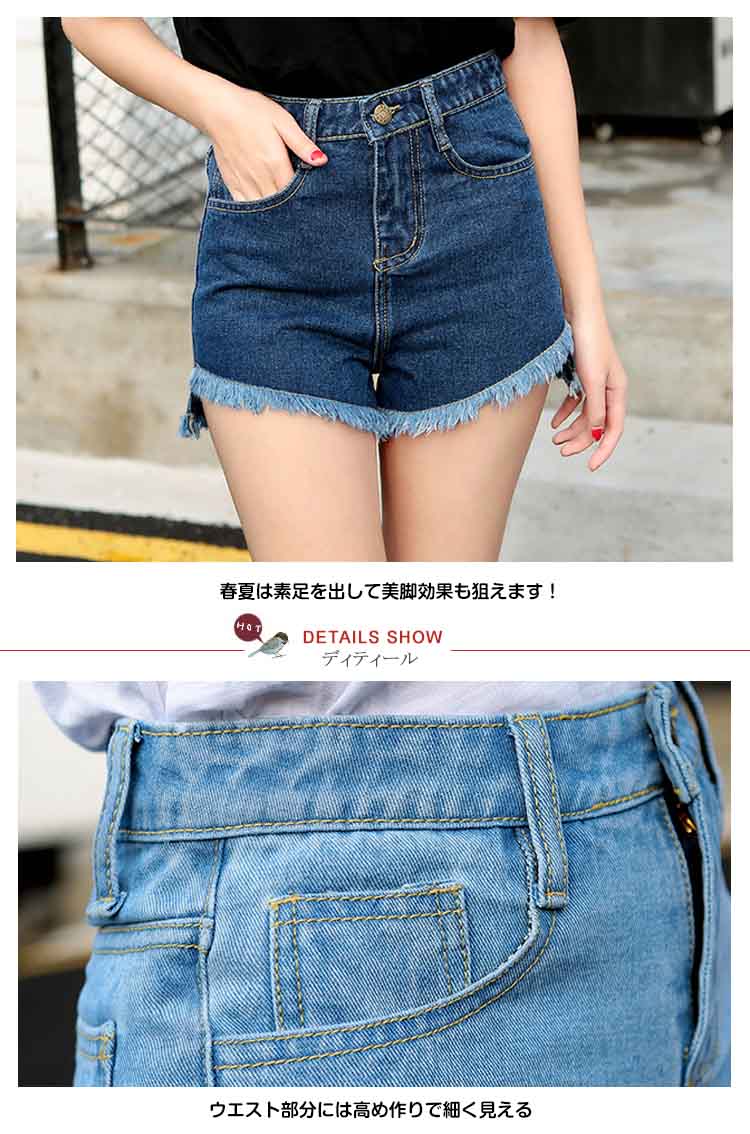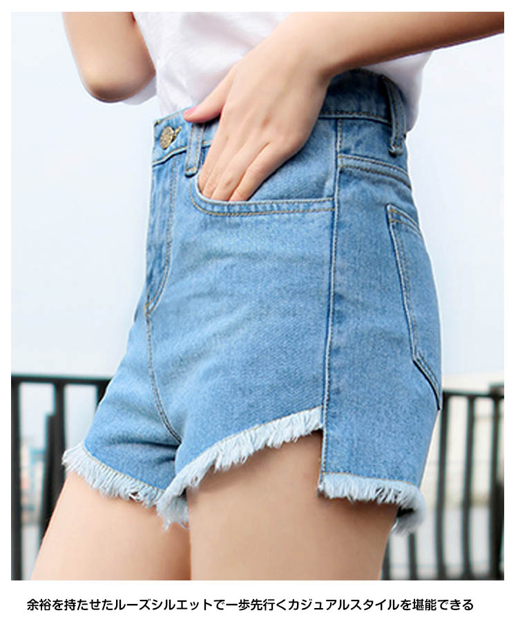 | 春夏定番&トレンドのハイウエストにショーパンTypeがお目見えです余裕を持たせたルーズシルエットで一歩先行くカジュアルスタイルを堪能できるさらに裾は切りっぱなし加工でこなれ感たっぷり♪シンプルなTシャツと合わせるだけでスタイリッシュに着こなせる脚細見え効果も驚く程発揮♪春夏は素足を出して美脚効果も狙えます! | |