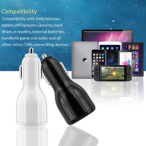 Car Charger, Apriletter (2-Pack) Dual Port 3.1A USB Car Charger Adapter High Speed Charging for Apple iPhone 7/7Plus/6/6 Plus Samsung Galaxy S8/S7/S6/Edge Etc (Black&White)