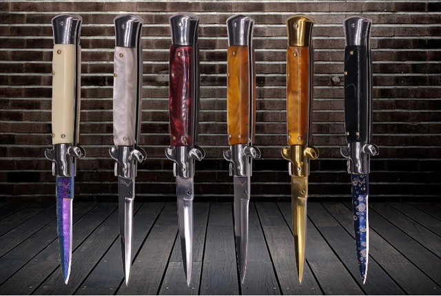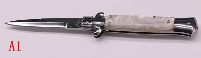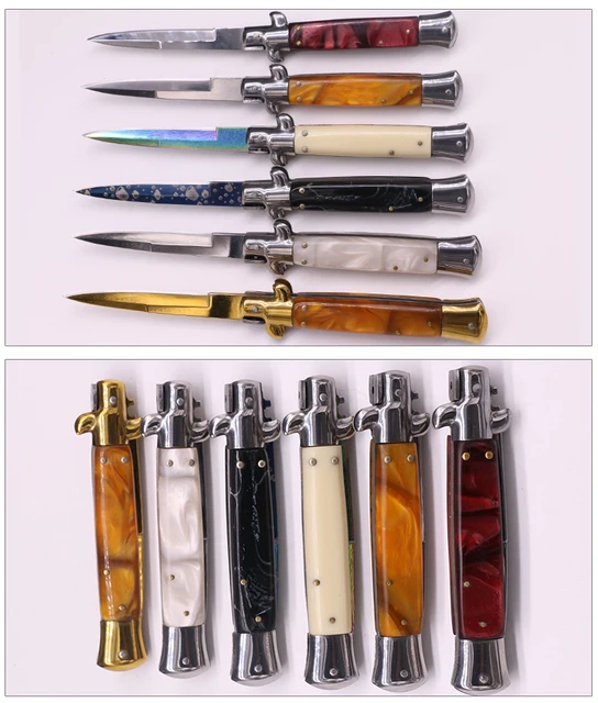 | [해외] FBIQQ 9 "인치 아크릴 핸들 이탈리아어 대부 스틸 440C 스틸 블레이드 생존 야외 캠핑 나이프 싱글 액션 |