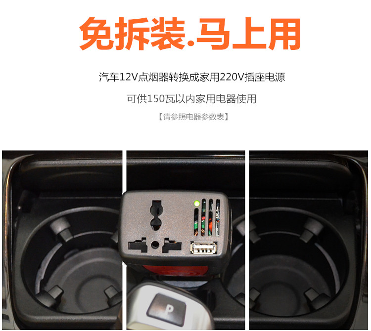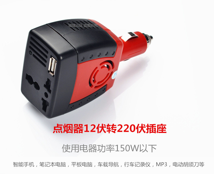 12伏转220伏家用插座端口 USB2.1A快充端口 150W输出功率