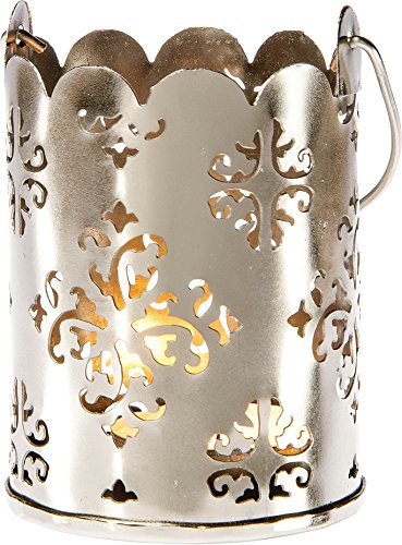 -. Title : Luna Bazaar Shadow Lantern Candle Holder (3-Inch, Amala Damask Design, Punched Tin) - For Home Decor, Parties, and Wedding Decorations