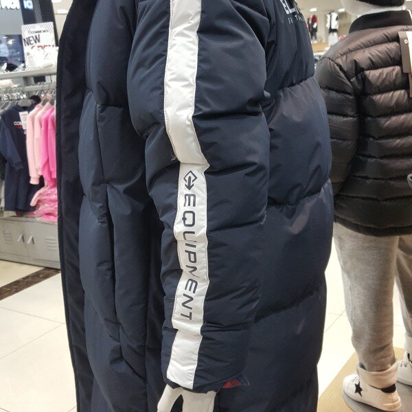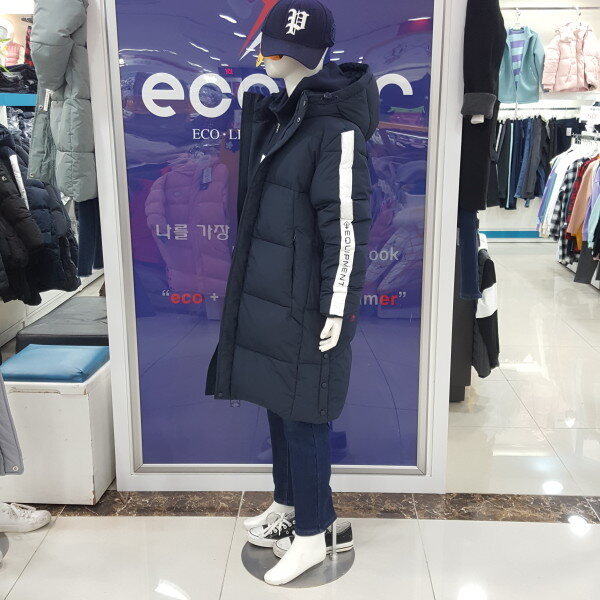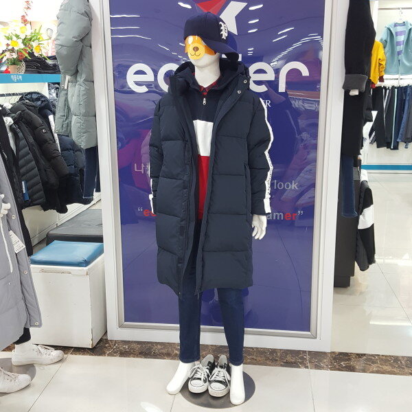 네이비 롱 점퍼이며 따뜻하고 어깨에 흰색티가있어 경쾌한느낌이 나는 롱점퍼입니다