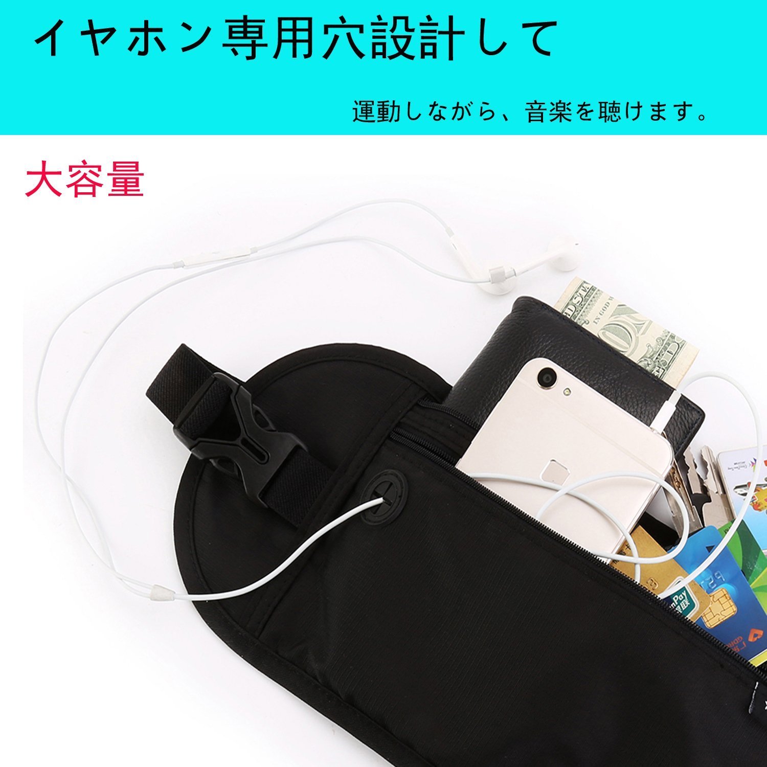 Passports, bank cards, as well as smartphones can be put inside.