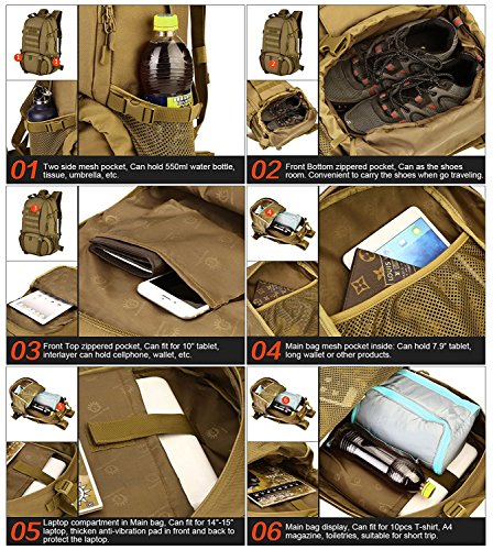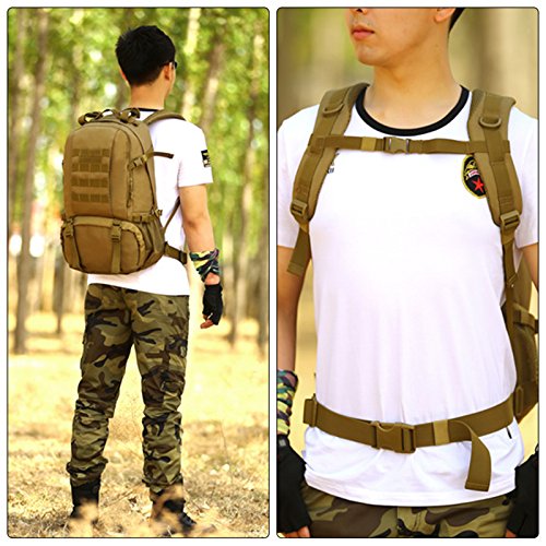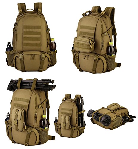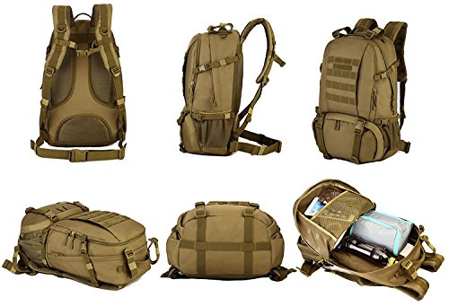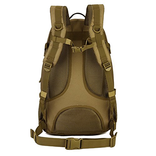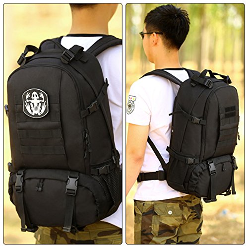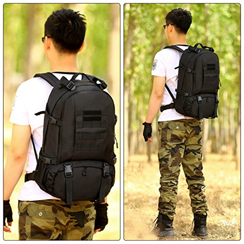 -. Feature : LARGE SIZE - Military tactical backpack size approx: 48 x 35 x 21cm(18.90 x 13.78 x 8.27inch), Capacity: 40L / MILITARY STYLE - Suitable for outdoor activity lovers, traveler, mountain climber, especially war game, military enthusiasts collection / EXCELLENT SHOULDER STRAP PADDING - There are loops on top & bottom of this backpack that are included, these can easily accommodate both a tent, rolls or sleeping bag - it's a really nice extra perfect to use when hiking, traveling, camping, mountaineering and other outdoor activities / HIGH QUALITY MATERIAL - 900D nylon, use good hardware, stronger zippers and buckles, self-repair zippers, waterproof nylon stitching, make it more durable and strengthen, very comfortable to carry through trails and up and down mountains / MORE COMFORTABLE - Widen shoulder strap, make it more comfortable and release pressure of shoulder,spongy cushion back padded make it ventilate,your backside feel more desiccative and comfortable