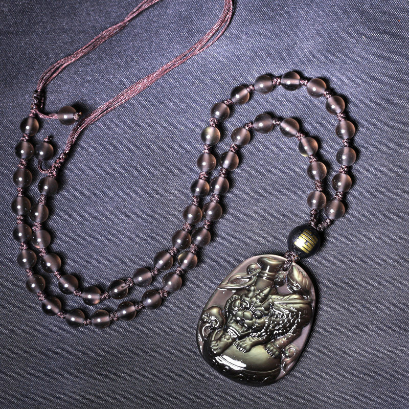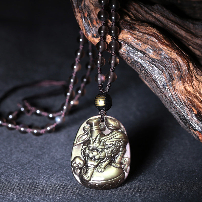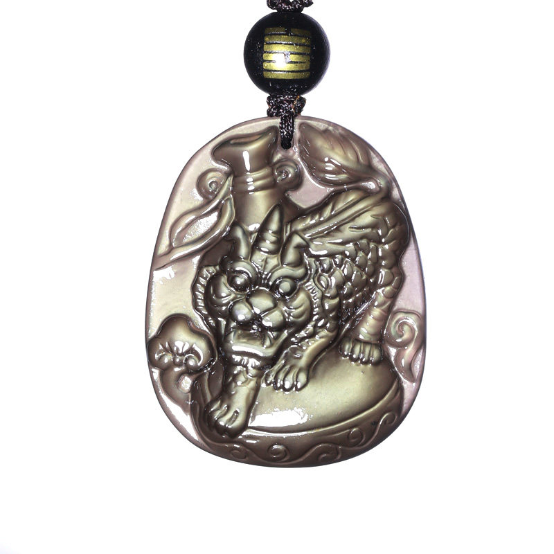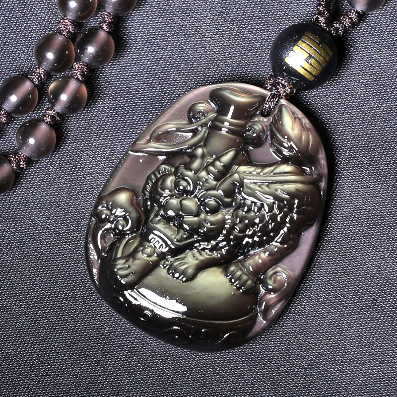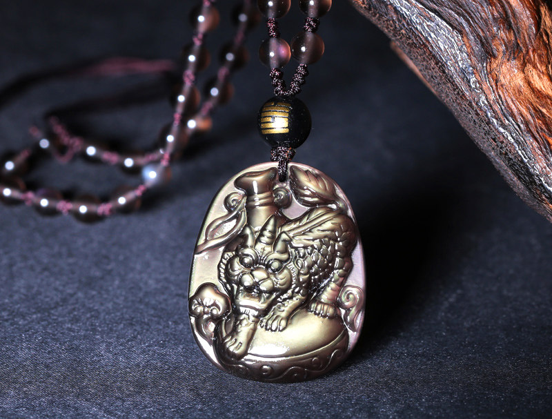 开光属牛化太岁吉祥物虎首经筒黑曜石吊坠生肖牛吊坠男女款