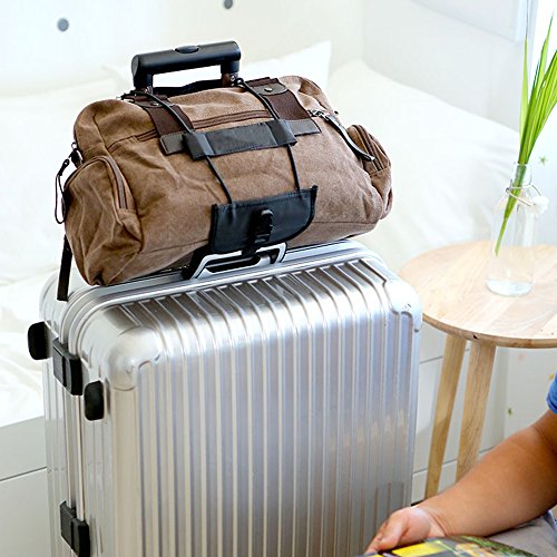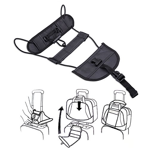 Crafted with high quality microfiber, elastic strap and plastic locker. Connect two items as one, fix one bag, laptop case or other item to the wheeled travel luggage. Secures 2nd bag, coat or other items, makes traveling alone easier.