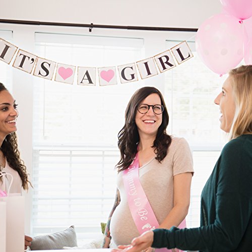 Baby Shower Party Decorations Kit: It's A Girl Pink Theme Welcome Supplies for Babies & Newborns With Confetti, Pennant Banner, Mommy To Be Sash,...