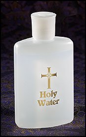 -. Feature : Plastic - 4 3/4 Inch (H) - 4 oz Capacity / Features screw cap lid with flip spout / Holy water not included