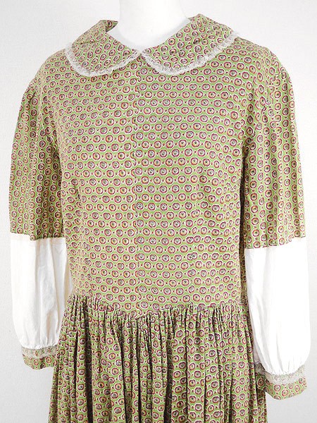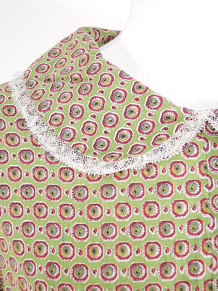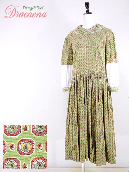 Ladies ブランド- カラー黄緑・オフホワイト・赤 メール便不可 コンディション★★★ 素材コットンと思われます。 表記サイズ記載なし スタッフコメント右袖先と襟後ろのレース裂けている部分が有ります。 実寸サイズ 着丈 118 cm 身幅 50 cm 肩幅 44 cm 袖丈 48 cm ウエスト 78 cm ※ウエスト・ヒップ以外は平置き採寸【code】#d