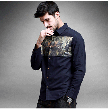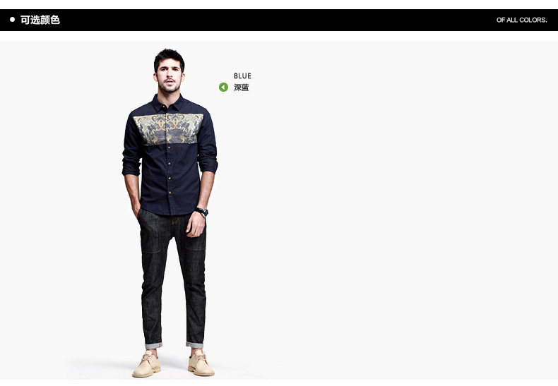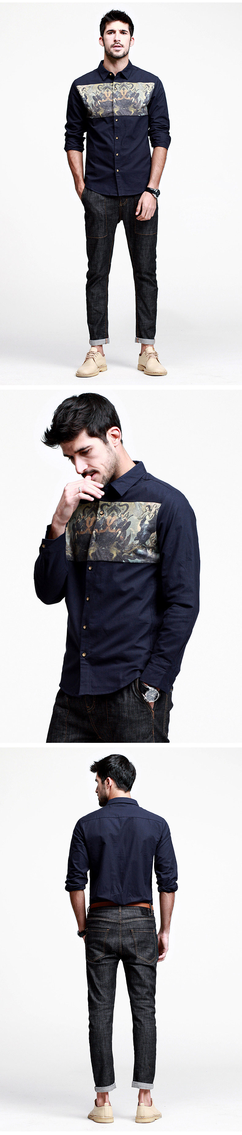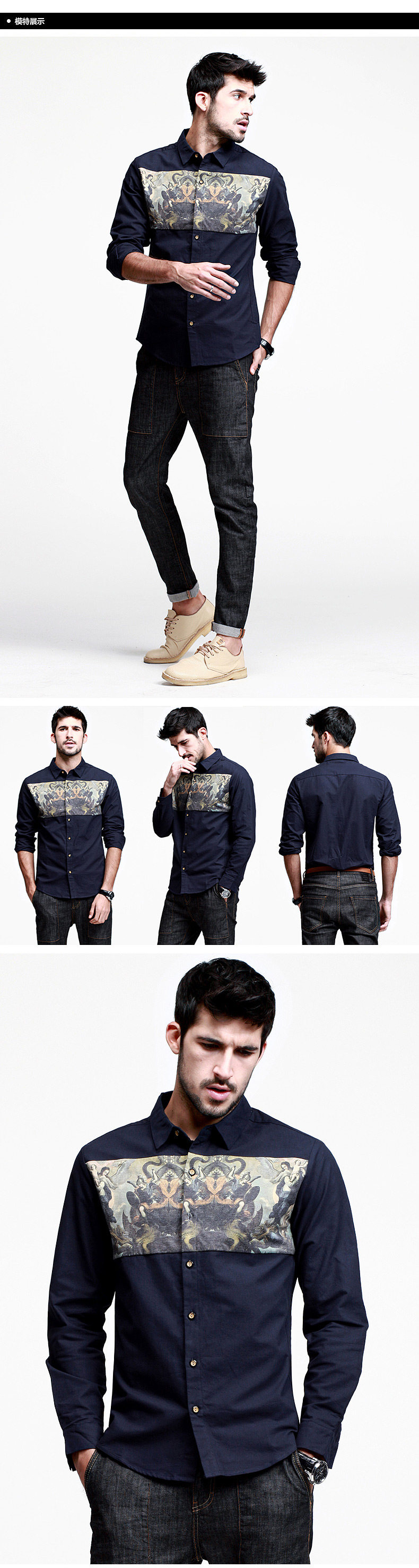 ①款式:欧式古典文艺复兴拼图粗布衬衫